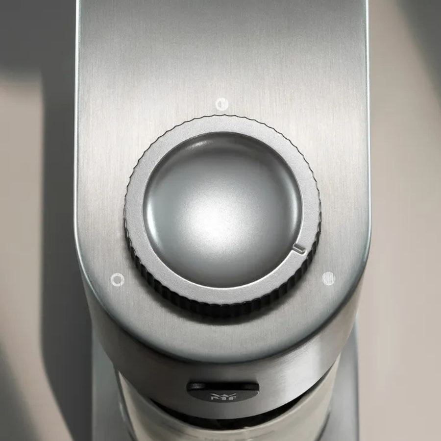 Máy được làm từ thép không gỉ Cromargan đặc trưng của WMF, mang lại vẻ ngoài hiện đại và độ bền cao.