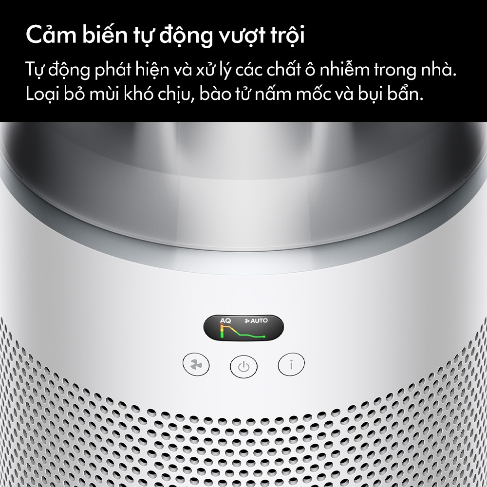 Liên tục phân tích và phản hồi chất lượng không khí, hiển thị dữ liệu theo thời gian thực trên màn hình LCD hoặc ứng dụng MyDyson™.