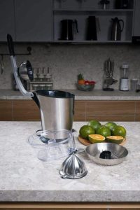 Máy nổi bật với cần gạt trợ lực giúp ép nhẹ nhàng nhưng vẫn đạt hiệu quả cao. Đầu vắt inox bền bỉ, phù hợp nhiều loại trái cây họ cam quýt. Vòi rót thông minh có thể gập lại giúp chống nhỏ giọt, giữ khu vực bếp luôn sạch sẽ. Các bộ phận dễ tháo rời, thuận tiện vệ sinh sau khi sử dụng. Ngoài ra, thiết kế chắc chắn và vận hành êm ái giúp nâng cao trải nghiệm người dùng.