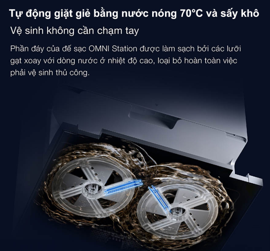 🧠 Trạm sạc OMNI 5-trong-1 thông minh: Tự động đổ rác, giặt khăn, sấy khô, cấp nước và sạc pin. Hoàn toàn không cần can thiệp thủ công.