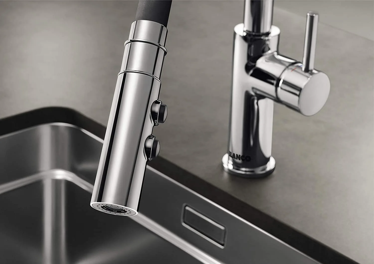 Thiết kế tinh tế, bề mặt sáng bóng giúp vòi rửa Blanco Catris-S Flexo trở thành điểm nhấn sang trọng, nâng tầm không gian bếp hiện đại.
